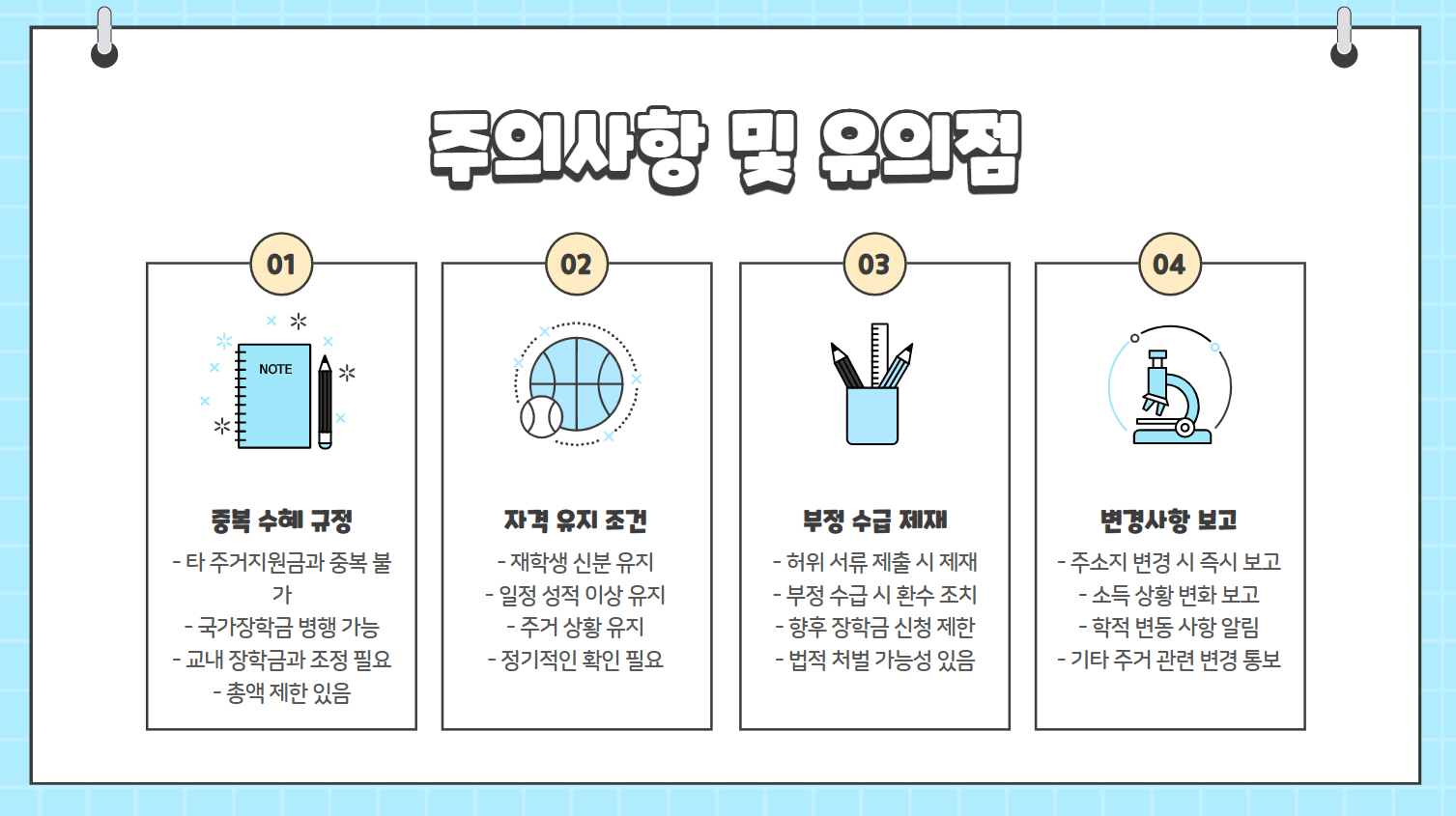 주거안정장학금은 모든 대학생이 받을 수 있는 건 아니에요. 다음 조건을 꼭 확인해보세요.