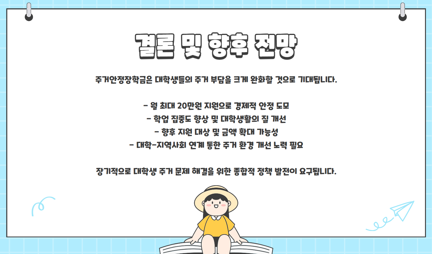 - ✔ 주거비 부담을 덜어 학업에 집중 가능 → 아르바이트 부담 없이 공부에 집중할 수 있어요!