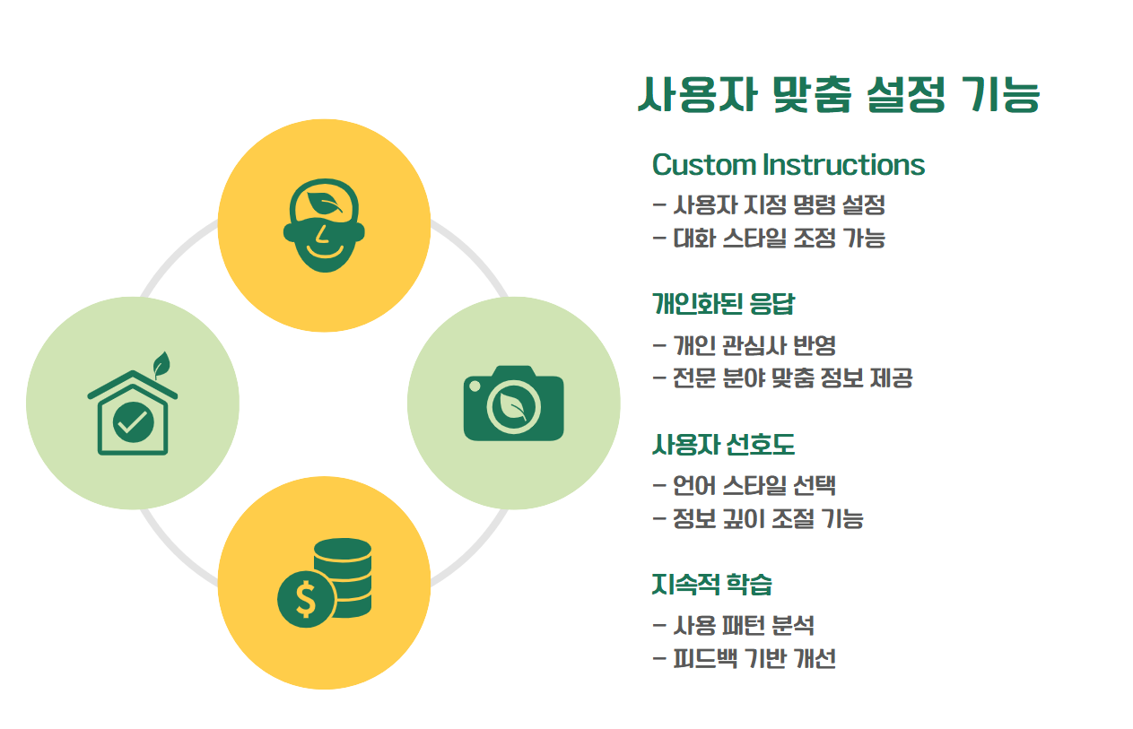 이제는 대화의 맥락을 더욱 정확하게 기억하고 이전에 주고받은 내용을 반영하여 보다 일관된 대화를 이어갈 수 있습니다. 예를 들어, 이전에 "내가 좋아하는 색은 파란색이야"라고 말하면 이후 대화에서 "내가 좋아하는 색은?"이라고 묻지 않아도 챗GPT가 스스로 기억하고 답변할 수 있습니다.