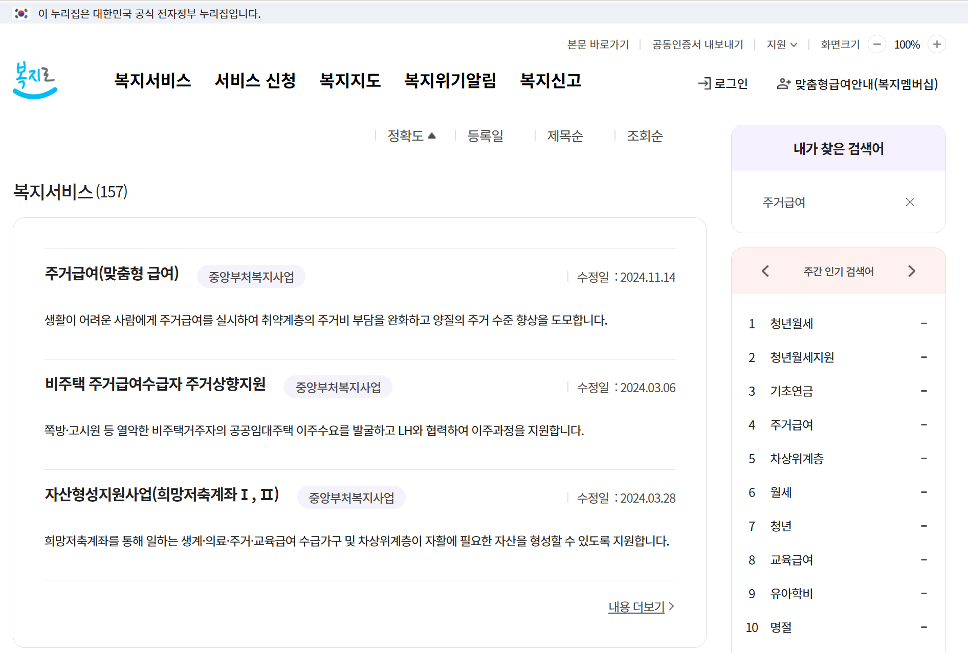 - 거주지 주민센터 방문 또는 복지로 홈페이지(https://www.bokjiro.go.kr/)에서 온라인 신청