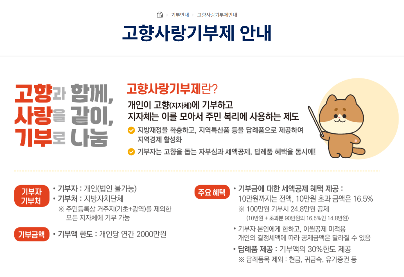 - 거주지를 제외한 모든 지방자치단체에 기부 가능합니다.